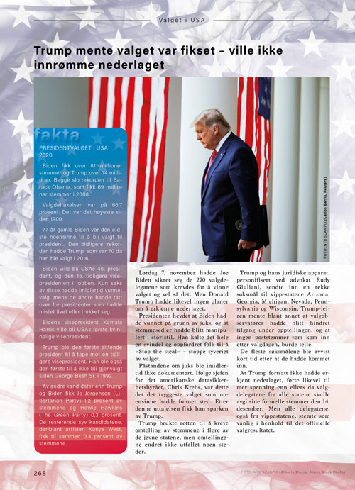 2020 var også et år preget av den allestedsnærværende Donald Trump, antirasisme-bevegelsen Black Lives Matter og presidentvalget i USA, som endte med sterke beskyldninger om valgjuks i verdens eldste demokrati. Men institusjonene i USA så ut til å klare seg gjennom stridighetene.